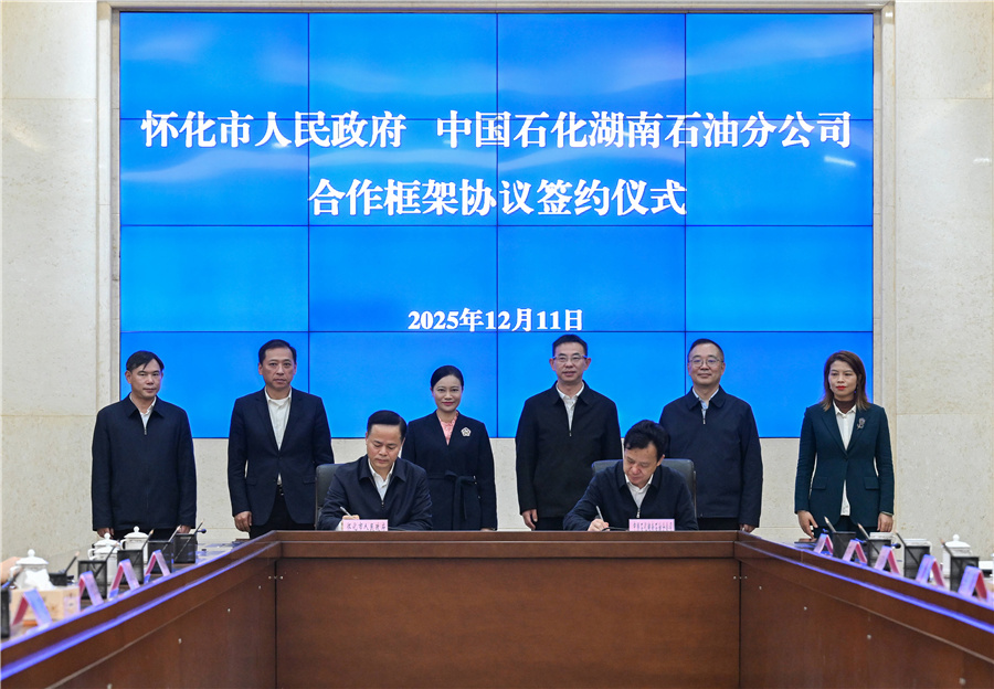 (12月11日下午,市政府與中國石化湖南石油分公司簽署合作框架協(xié)議。懷化日報(bào)全媒體記者 吳濤 攝)