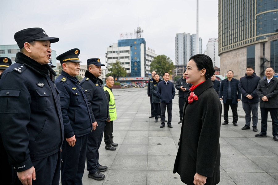 懷化火車站廣場(chǎng)周邊是節(jié)假日主城區(qū)繁忙地段之一。韋朝暉來到廣場(chǎng)執(zhí)勤點(diǎn),看望慰問執(zhí)勤民警、城管執(zhí)法隊(duì)員和環(huán)衛(wèi)工人,感謝他們?cè)诠?jié)日期間堅(jiān)守崗位、默默奉獻(xiàn),叮囑公安部門加強(qiáng)社會(huì)面治安巡邏防控、大型活動(dòng)安全管理、人員密集場(chǎng)所安全防范;城管執(zhí)法部門堅(jiān)持文明執(zhí)法、溫情服務(wù),強(qiáng)化與街道社區(qū)聯(lián)動(dòng)配合,統(tǒng)籌做好市容環(huán)境維護(hù)、煙花爆竹管控等工作;環(huán)衛(wèi)部門切實(shí)關(guān)心關(guān)愛環(huán)衛(wèi)工人,落實(shí)好各項(xiàng)保障措施,在全社會(huì)營造關(guān)心尊重一線勞動(dòng)者的濃厚氛圍。在詳細(xì)了解懷化火車站客運(yùn)流量、運(yùn)力保障等情況后,韋朝暉指出,火車站是展示城市形象的重要窗口,要科學(xué)研判客流變化,細(xì)化服務(wù)保障舉措,確保群眾平安、便捷、溫馨出行。