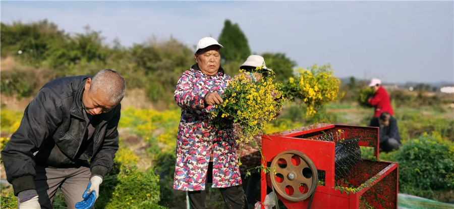 “六月初種植野菊花有我,現(xiàn)在采收季我又到,看到自己親手種下的野菊花豐收了,打心眼里高興。一天有一百塊錢務(wù)工收入,真是太好了。”白羊坪村村民尹德娟邊采菊邊說道。