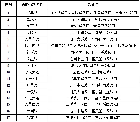 根據(jù)懷化城區(qū)機(jī)動車違法停車管理工作及城區(qū)部分道路更名的實(shí)際情況,為規(guī)范城區(qū)道路違法停車整治工作,現(xiàn)將平安路、云集路等2條機(jī)動車違法停車行為嚴(yán)格管理路段調(diào)整為非嚴(yán)格管理路段,迎豐路、順天大道部分路段做優(yōu)化調(diào)整,環(huán)城東路、高堰路、舞陽大道予以更名。城區(qū)調(diào)整后的嚴(yán)格管理路段如下: