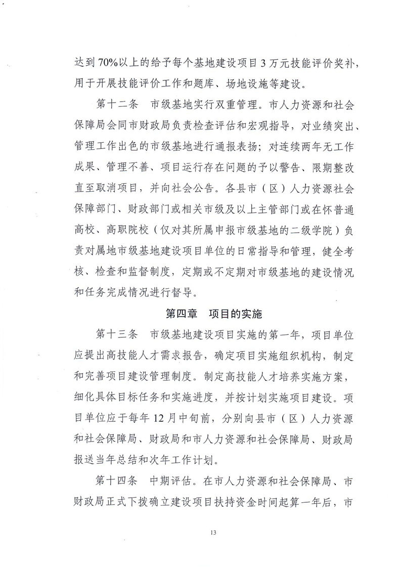 關(guān)于印發(fā)《懷化市市級(jí)高技能人才培訓(xùn)基地建設(shè)項(xiàng)目實(shí)施管理辦法(修訂)》的通知