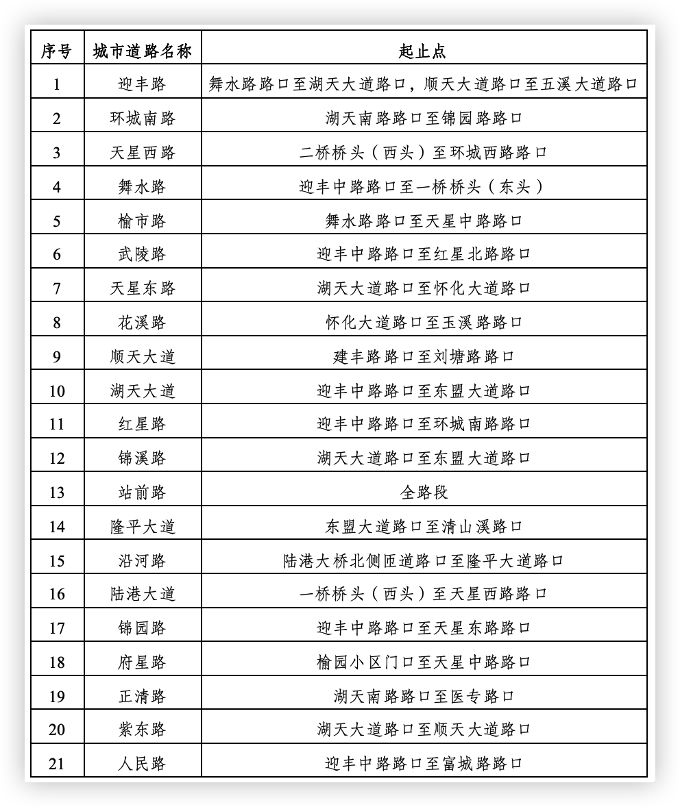 根據(jù)懷化城區(qū)機(jī)動(dòng)車違法停車管理工作實(shí)際情況,現(xiàn)增設(shè)天星西路、環(huán)城南路、人民路為機(jī)動(dòng)車違法停車行為嚴(yán)格管理路段。正清路部分路段做優(yōu)化調(diào)整。城區(qū)調(diào)整后的嚴(yán)格管理路段如下: