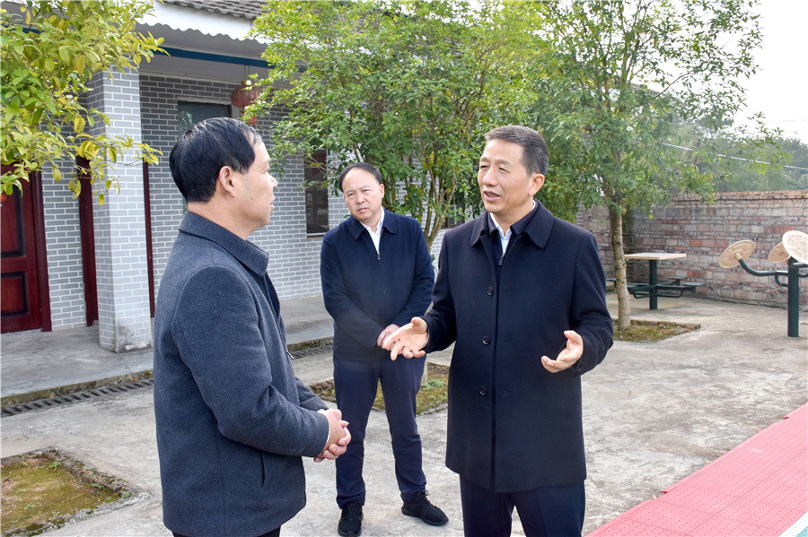 在涼傘鎮(zhèn)黃雷村黃雷寨,許忠建了解和美鄉(xiāng)村建設(shè)情況,并與農(nóng)民群眾座談交流。他指出,要充分發(fā)揮群眾主體作用,引導(dǎo)群眾積極參與庭院美化、環(huán)境整治,深入實施文明鄉(xiāng)風(fēng)建設(shè)工程,持續(xù)推進(jìn)農(nóng)村移風(fēng)易俗,培育時代新風(fēng)新貌。