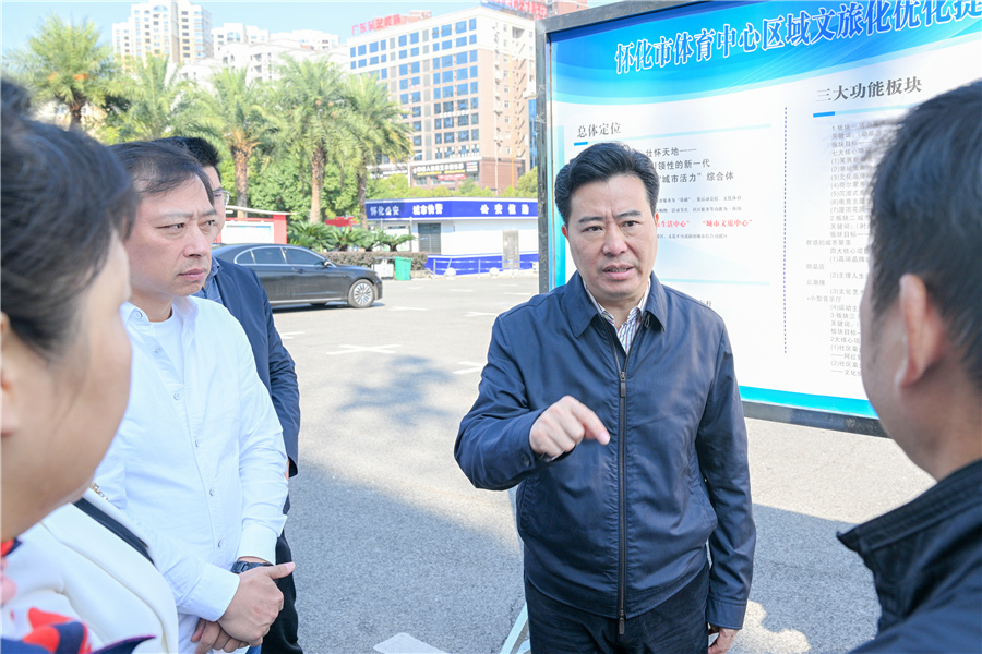 (10月22日上午,市委副書記、市長黎春秋調(diào)研主城區(qū)城市承載商圈工作。懷化日報全媒體記者 潘雨 攝)