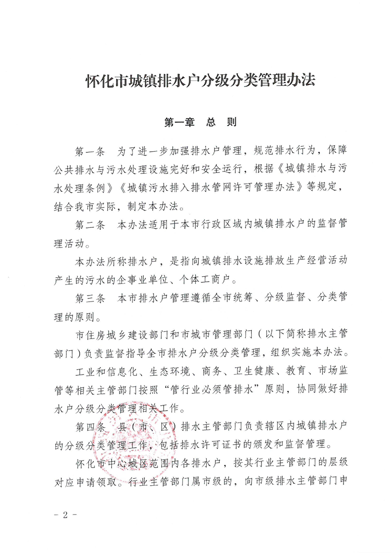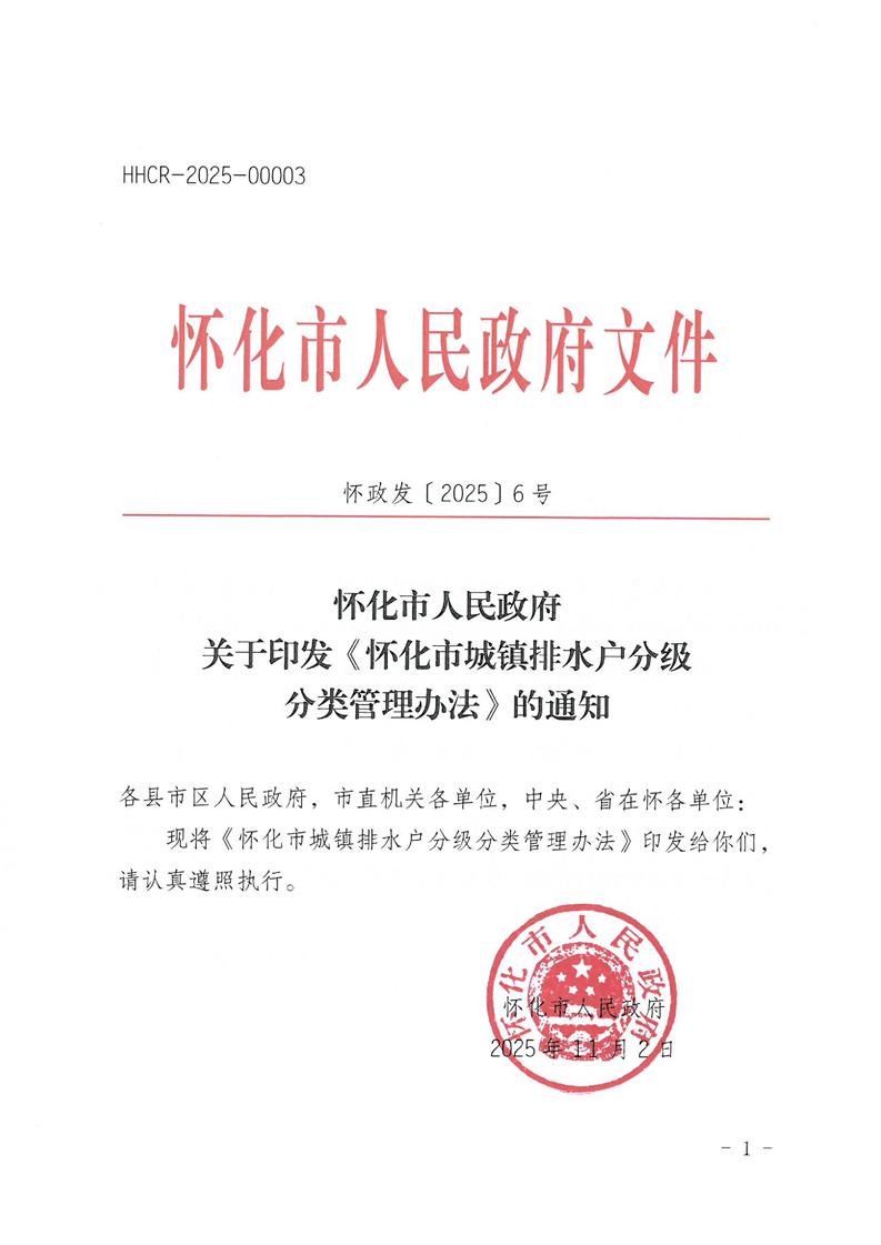 懷化市人民政府關(guān)于印發(fā)《懷化市城鎮(zhèn)排水戶分級(jí)分類(lèi)管理辦法》的通知